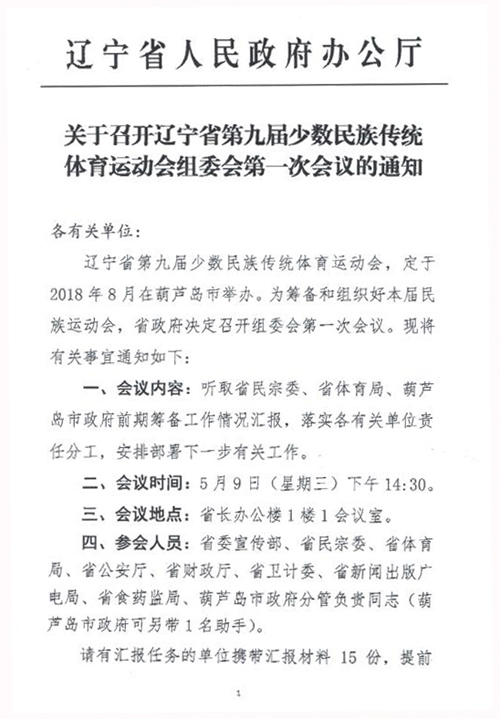 关于召开日本av片第九届少数民族传统体育运动会组委会第一次会议的通知