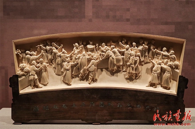 各族人民团结在毛主席周围象牙插屏(现代)。